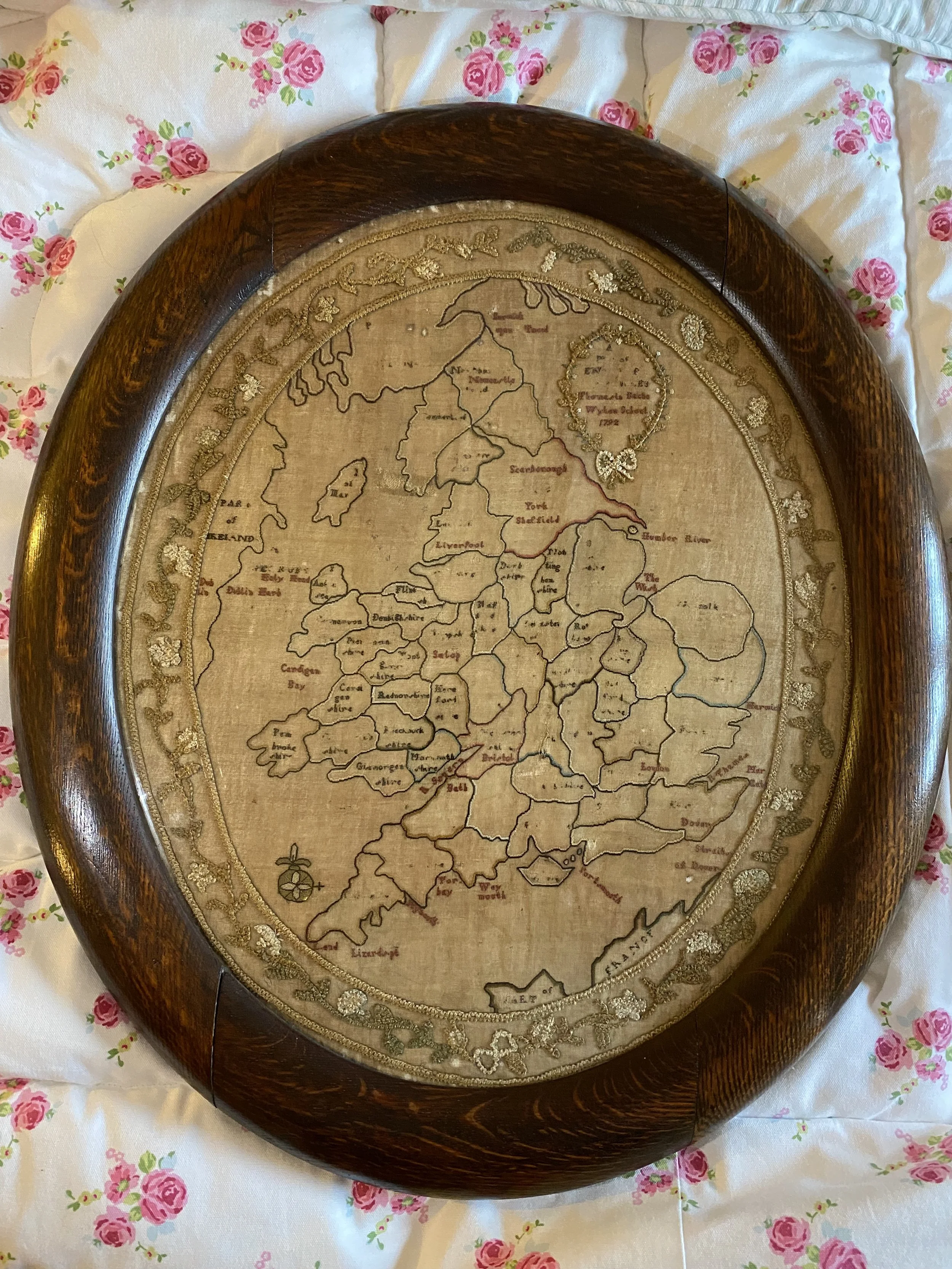 In May 2022 we were entrusted with conserving and reframing an 18th century map sampler which had been in the owners’ family for generations.